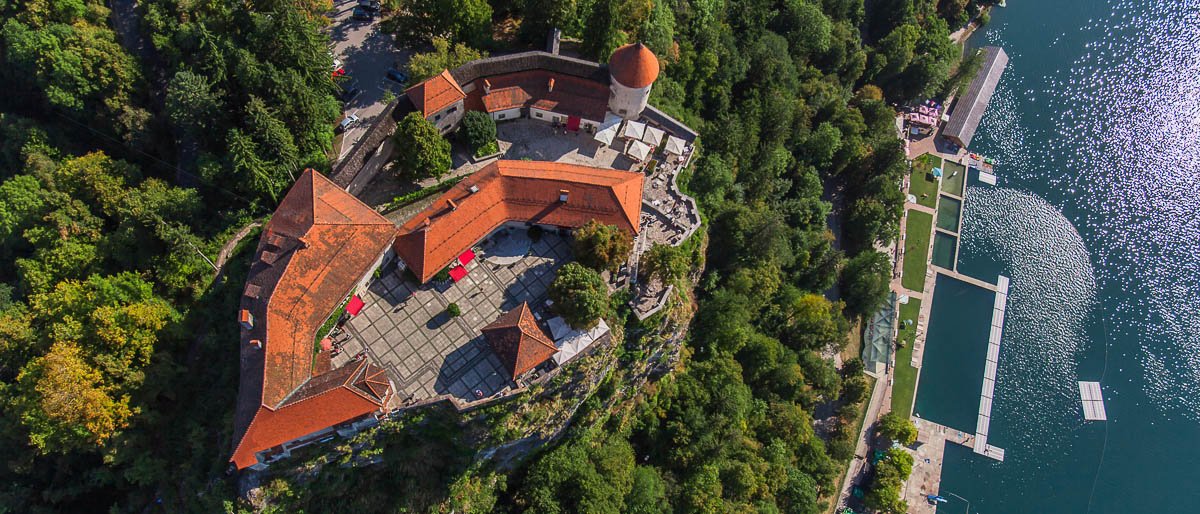 A breath-taking view from the Castle terrace over Lake Bled and Bled Island.