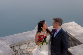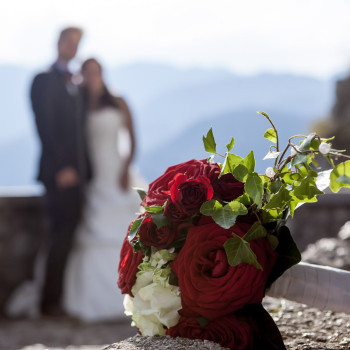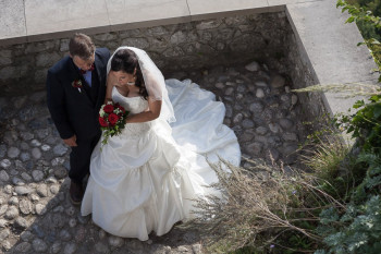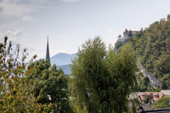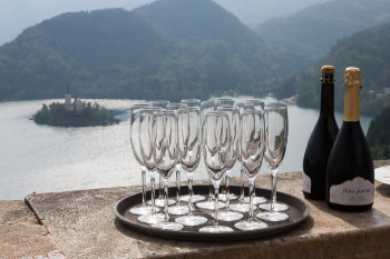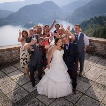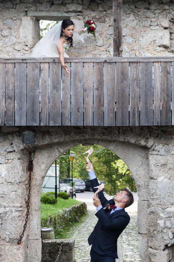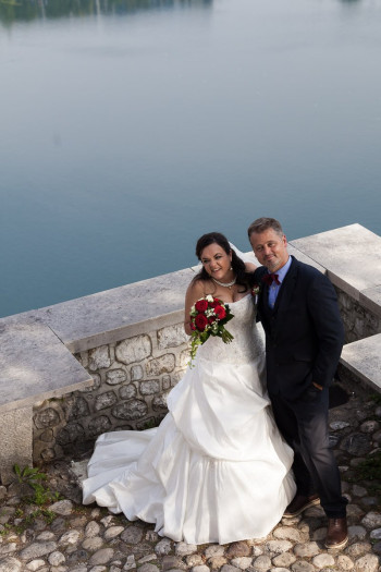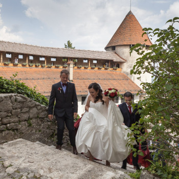 After the wedding ceremony, they had the photo shooting at Bled castle, which offers great views over the lake and is a perfect backdrop for wedding photos.