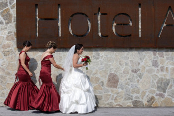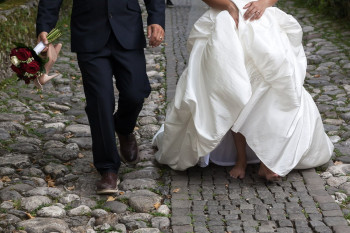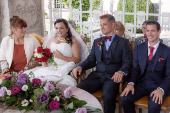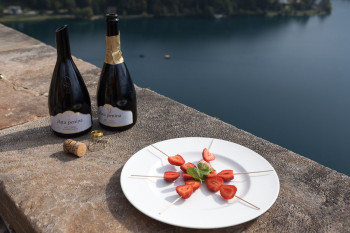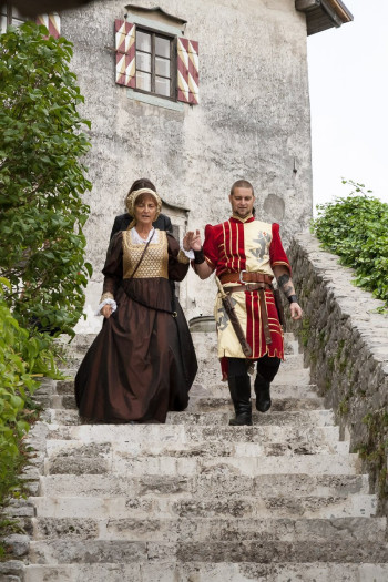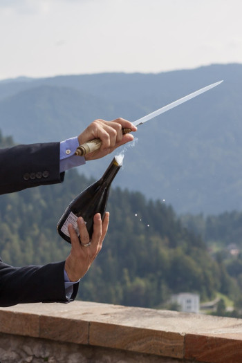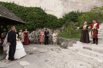 The wedding preparations were done in recently renovated hotel Astoria located close to the Castle. The bride and the groom were transferred to Bled Castle in a traditional horse driven carriage. They were greeted by the Lord of the Castle and accompanied to the castle courtyard where the civil wedding took place.